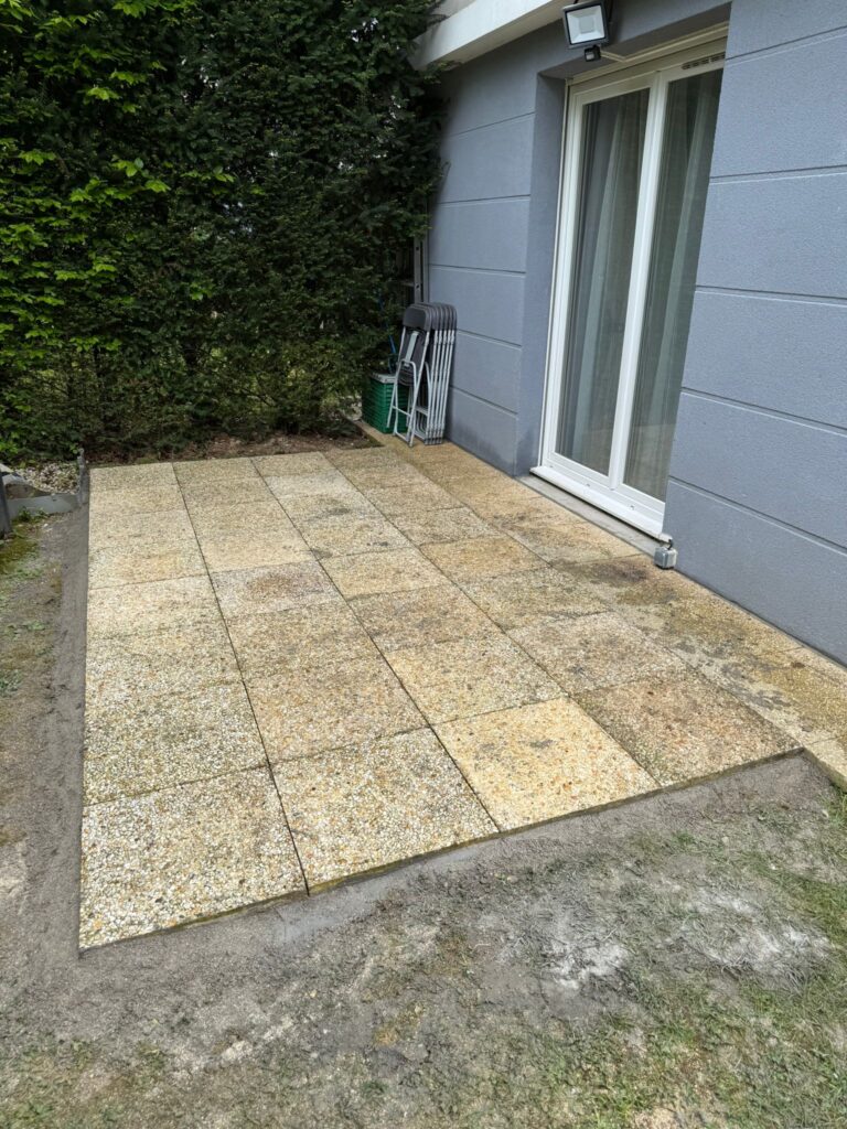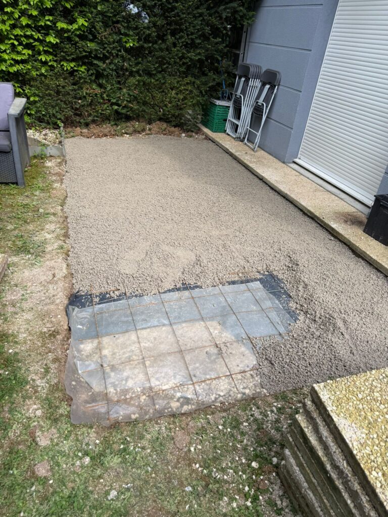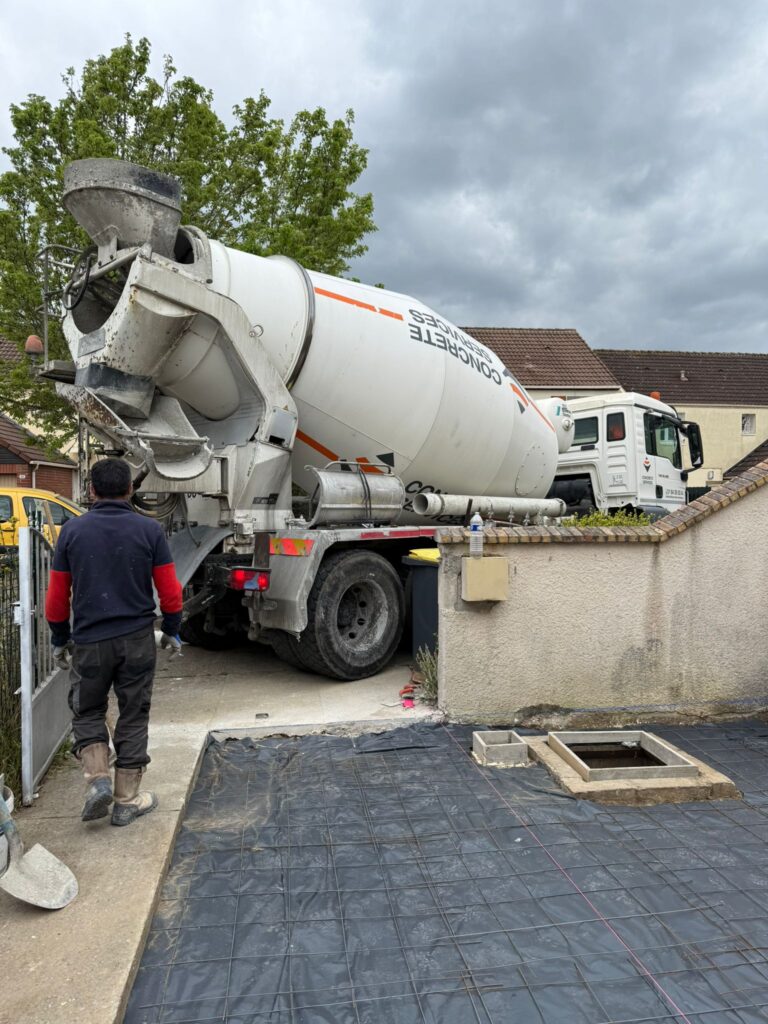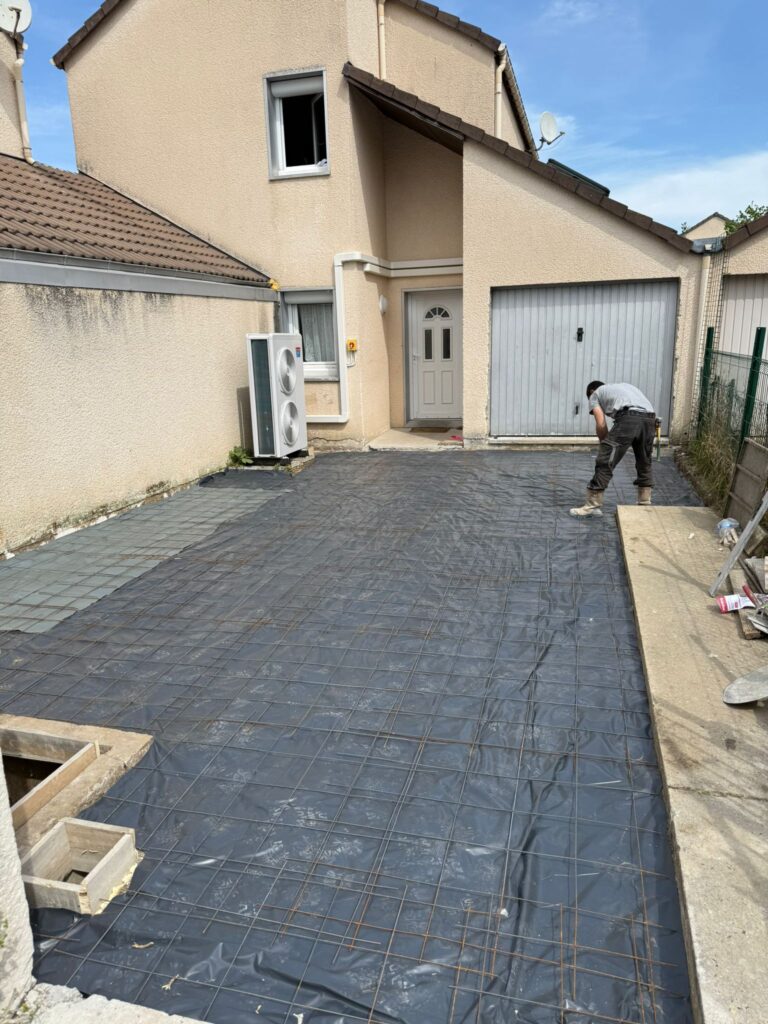 Réalisation d’une dalle béton pour un chemin d’accès à une maison.